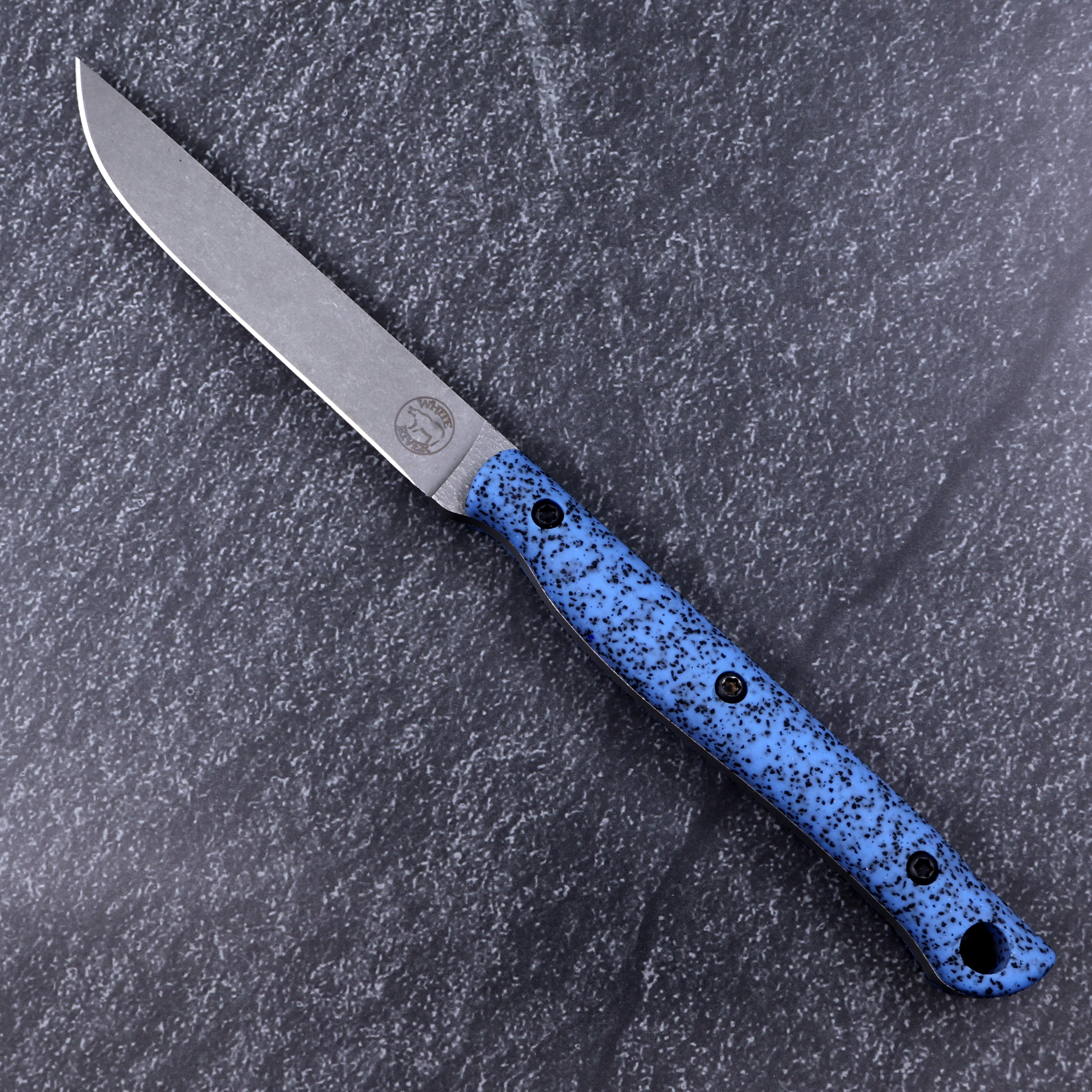The Exodus 3 (aka the Adventurecraft by Exodus Knife and Tool) is seemingly too small to be a star in the outdoor sports world of bushcraft, but it is! The size of a bird and trout knife, the Exodus 3 is a tough, edge holding champion. Though smaller than the Exodus 4, this model is perfect for feathering firewood and smaller bushcraft chores, game dressing, food prep, and a multitude of edc tasks. It is very comfortable in the hand and easy to carry on the belt, around the neck or as a back up in the field pack. Made of CPM S35VN super steel and includes a custom Kydex sheath.