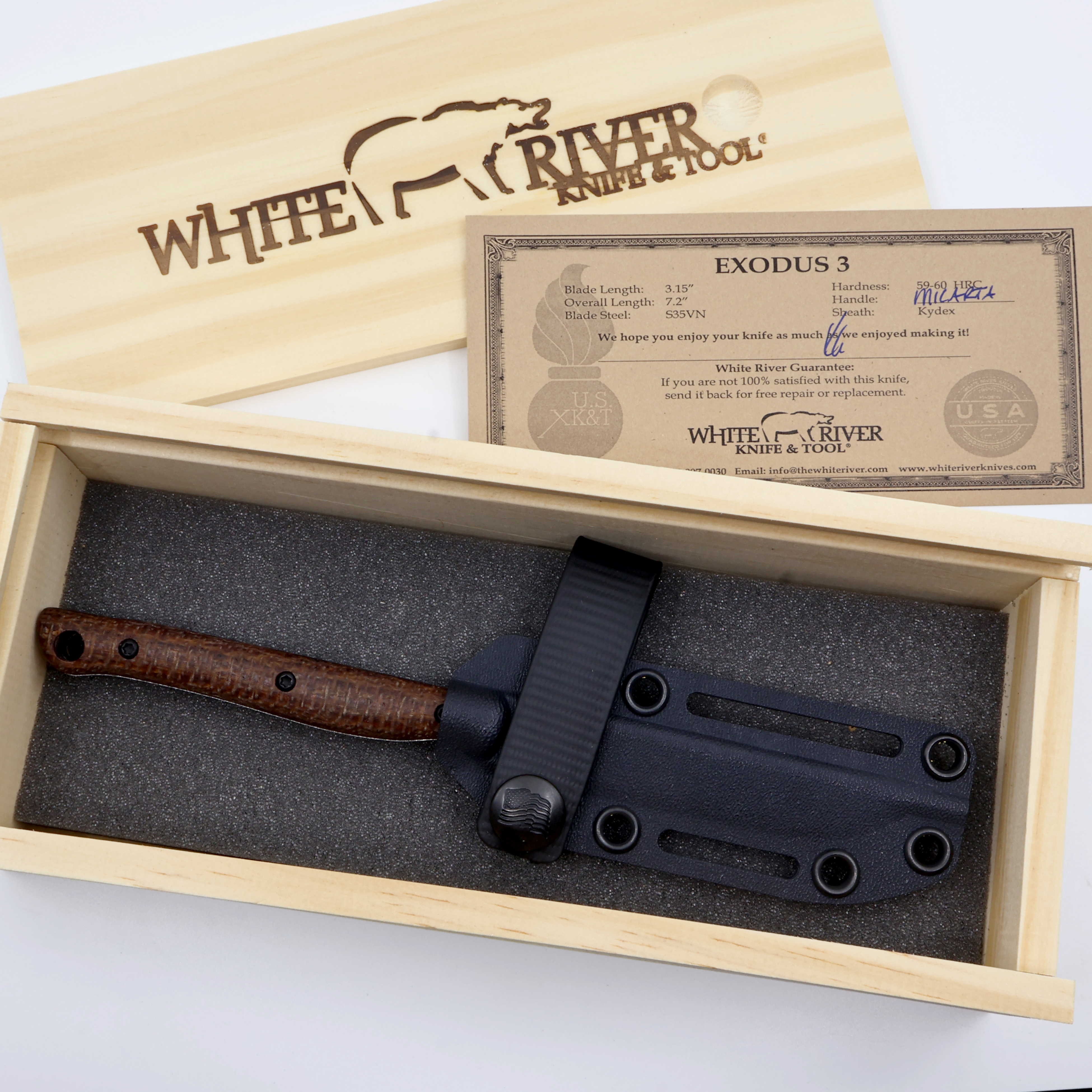 I was looking for a fixed blade that was low profile, slim, easy to carry, and can handle some tough outdoor tasks when needed. The exodus 3 fits my needs. A suggestion for white river is to make a longer version (8-8.5) of the exodus 3 while maintaining the same width and thickness to keep the same low profile. Please consider an option for magnacut for the exodus series.