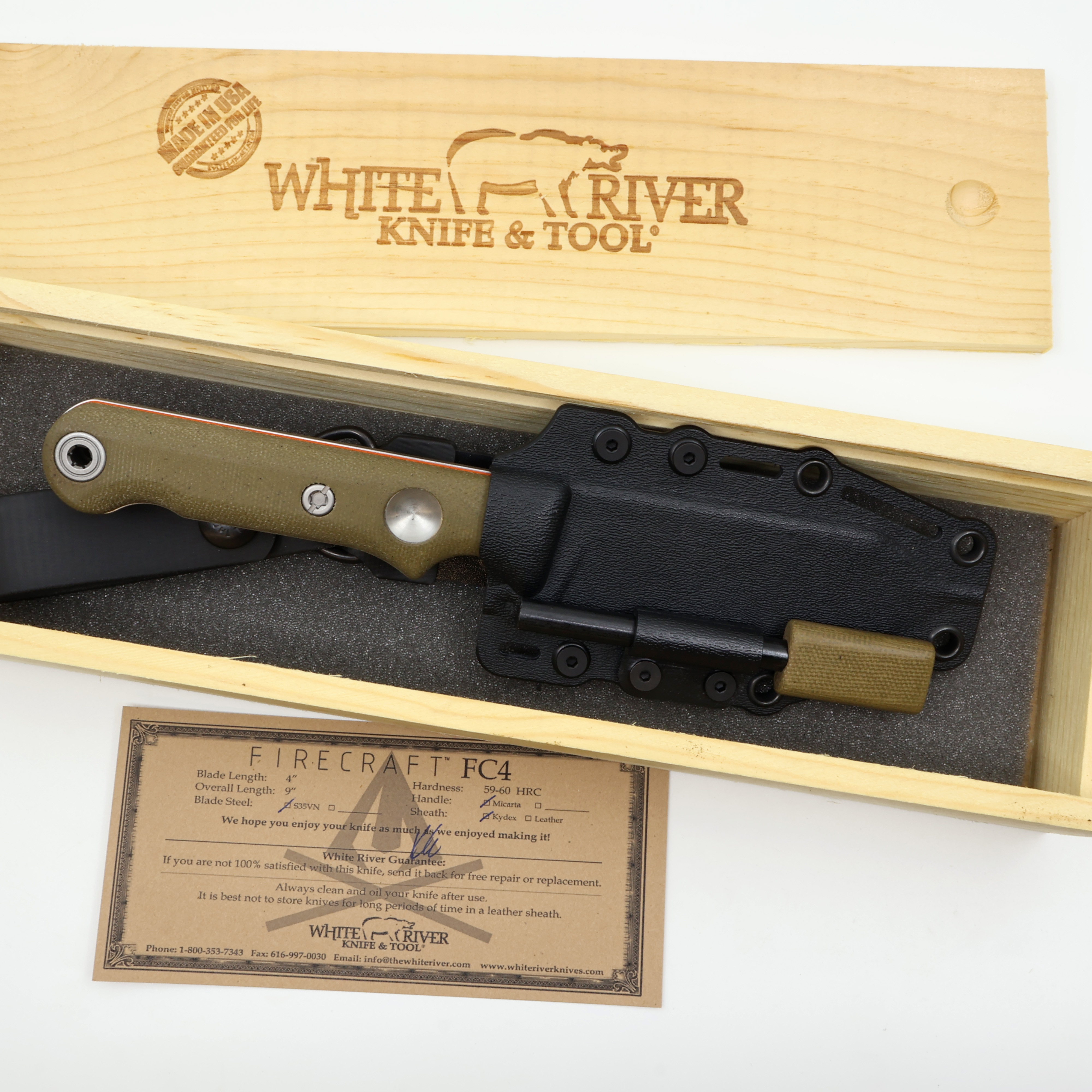I own many quality bushcraft knives, and the Firecraft FC4 is among the top of my collection. Excellent quality and craftsmanship by White River Knives! The S35VN blade sharpens to a razor edge and the green micarta handle with orange liners are classy and beautiful. Thank you White River Knives for such an outstanding product!