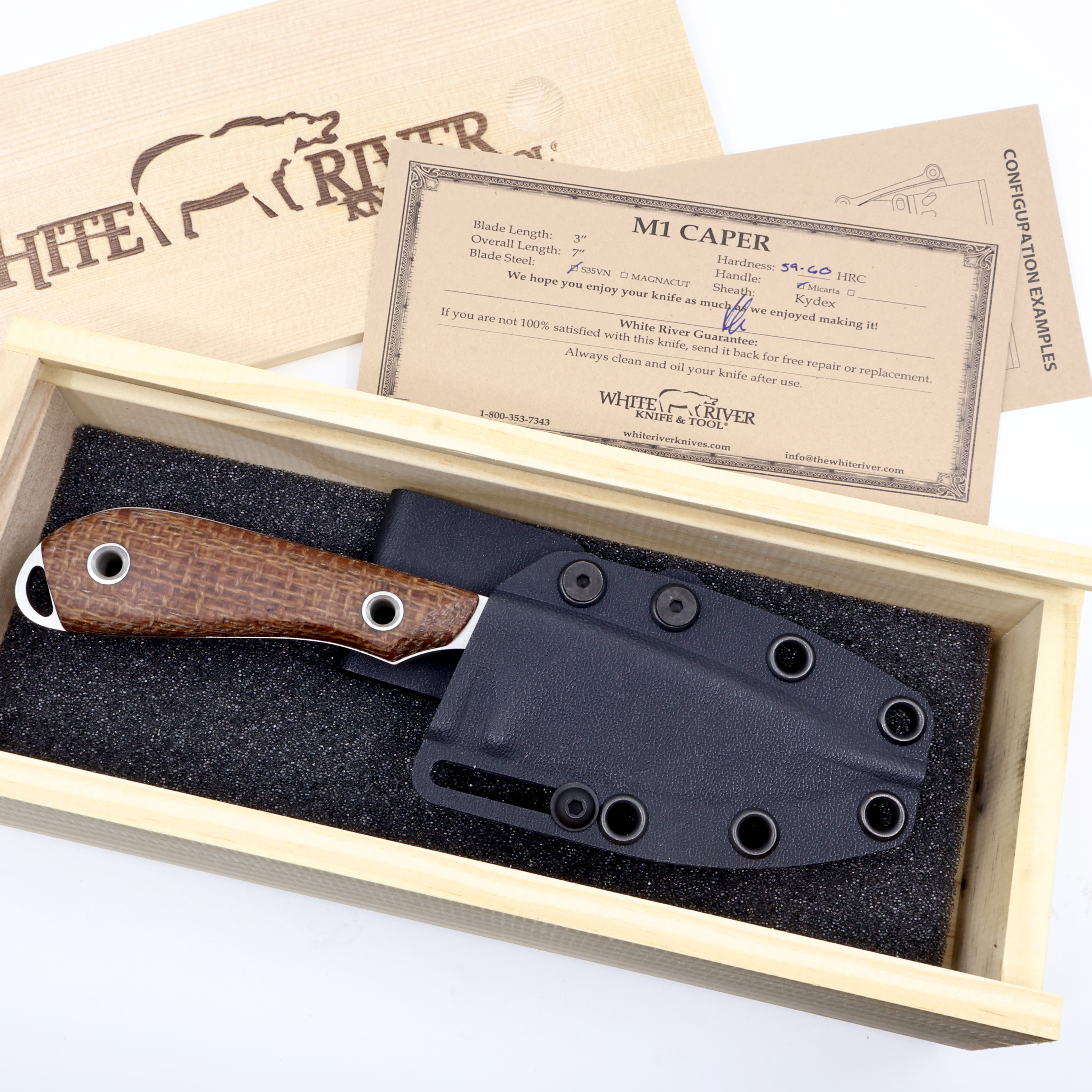 I just received a Model 1 knife from White River . The knife is perfect in all aspects. The knife is also very sharp. All my White River knives are all perfect.