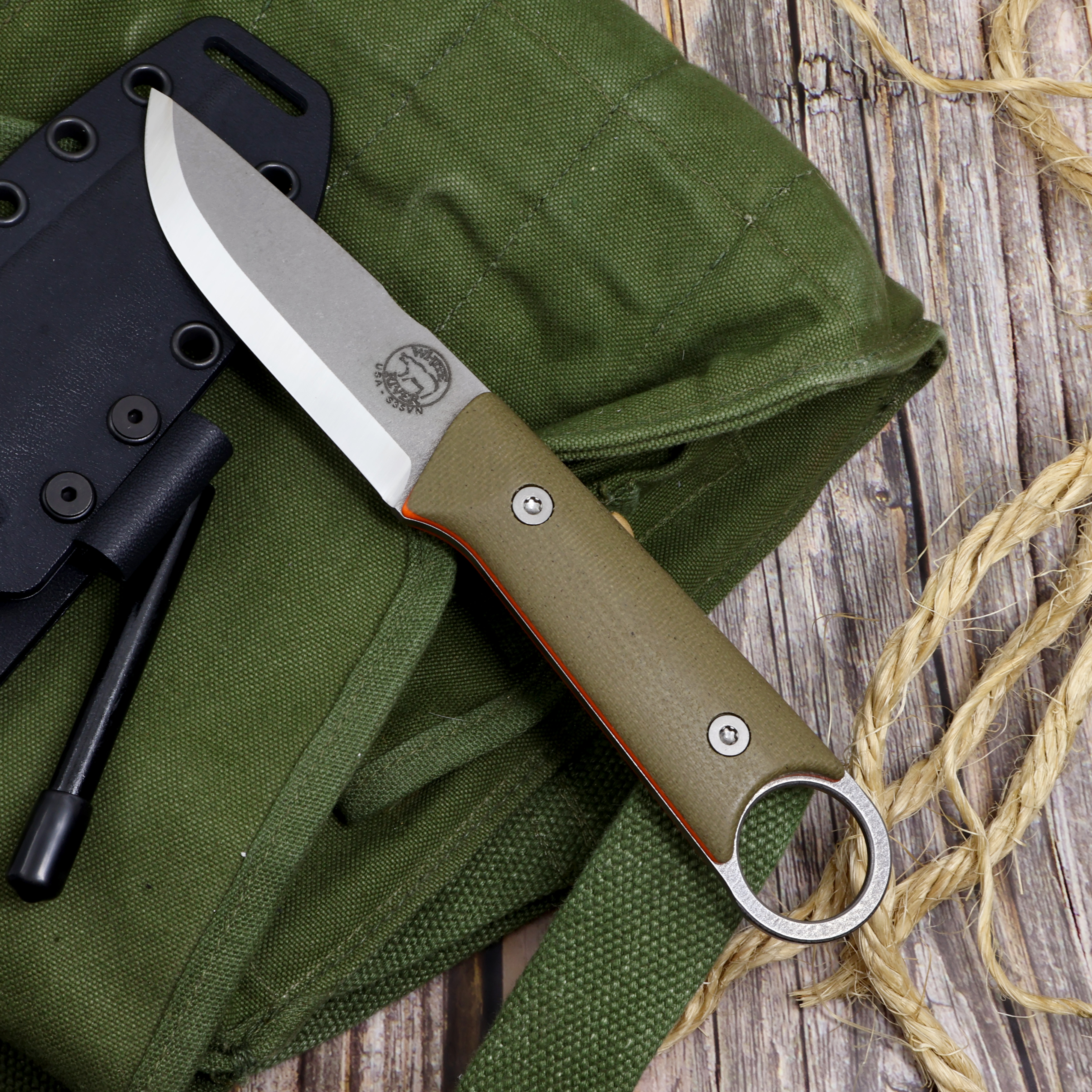 Great slicier, comfortable handle pinkie fits in the ring nicely ,razor sharp scandi, good kydex sheath, happy camper