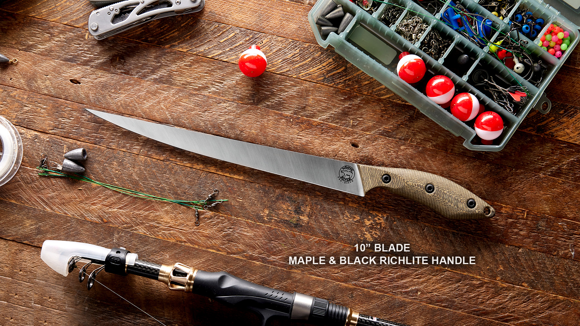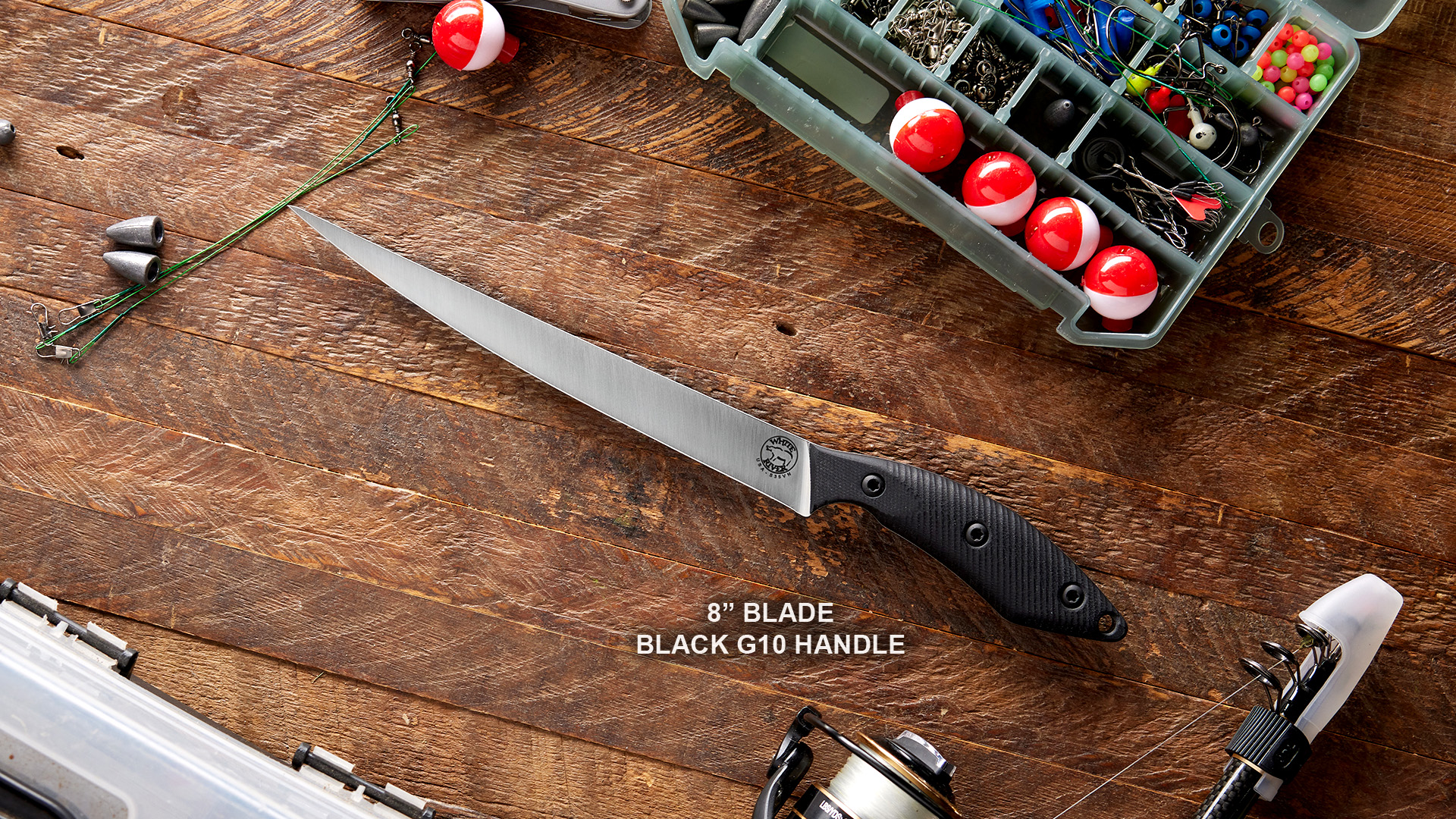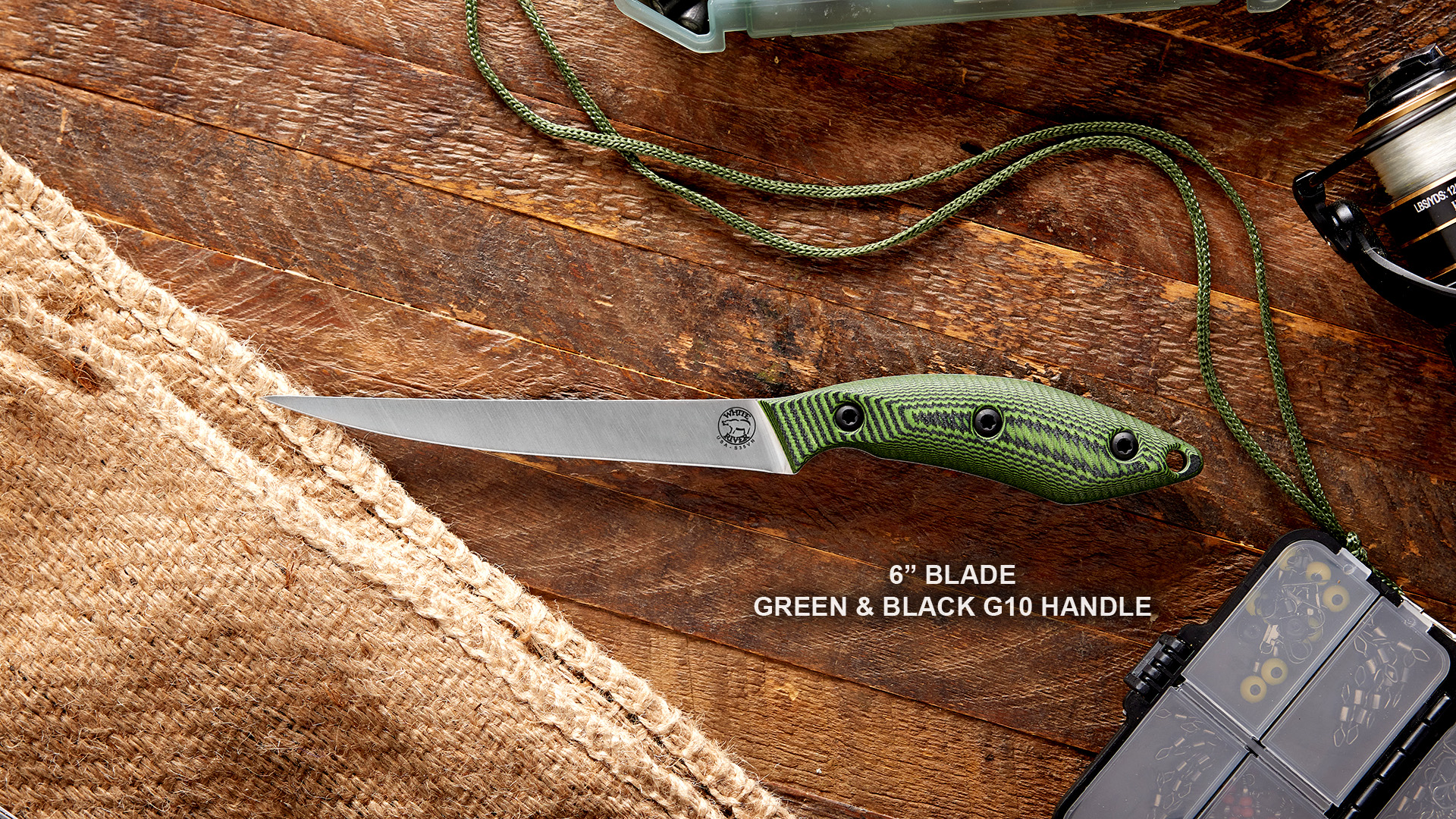 Introducing 3 all new White River Fillet Knives. Made from precision ground, cryogenically tempered CPM S35VN steel. The razor sharp edge is leather honed to easily slice with the utmost control and ease. Textured handle scales provide a positive no-slip hand purchase in wet and slimy conditions. Available in blade lengths of 6, 8 or 10 inches. All White River Knives are Made in the U.S.A. and Guaranteed for life.